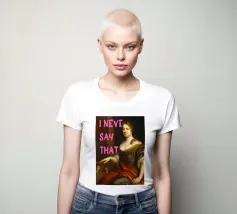 Iniettate una dose di sottile umorismo nel vostro spazio con "I Never Say That", una spiritosa stampa pop art che giustappone sapientemente un ritratto classico a una frase moderna e attuale. Questa accattivante opera d'arte presenta una figura storica serena, con uno sguardo diretto e consapevole, elegantemente in posa accanto a ritratti in miniatura. Il testo in grassetto, di colore rosa caldo, "I NEVER SAY THAT" (Non lo dico mai) si sovrappone all'immagine, creando un commento umoristico sui pensieri non detti e sulle convenzioni sociali. È una miscela perfetta di eleganza senza tempo e arguzia contemporanea, ideale per aggiungere personalità e un tocco di spensieratezza a qualsiasi interno moderno. Realizzato