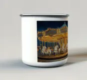 Un suggestivo motivo di una giostra illuminata a festa con cavalli bianchi che crea un'atmosfera nostalgica da fiera. Le luci calde e lo stile dettagliato evocano ricordi dell'infanzia, dei mercati invernali e del periodo natalizio. Ideale per murales, cuscini, tazze o poster, questo disegno porta magia, gioia e un'atmosfera festosa in ogni casa.