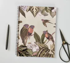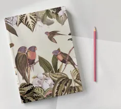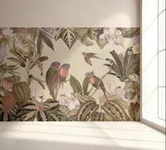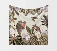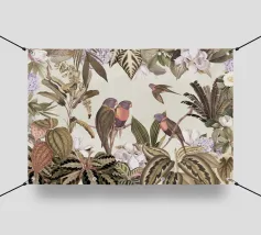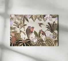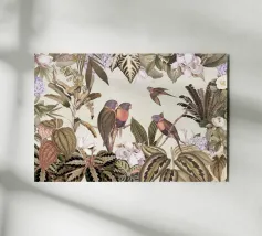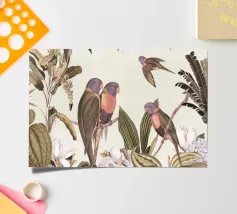 Un vivace collage di illustrazioni vintage di Uta Naumann con pappagalli colorati appollaiati in un lussureggiante paesaggio floreale. La scena esplode di bellezza tropicale ed esotica, poiché i pappagalli sono circondati da splendidi fiori esotici ed eleganti rami di palma. Una mappa d'epoca fa da sfondo, aggiungendo un elemento di avventura e scoperta alla composizione. I dettagli intricati del fogliame e i colori vivaci evocano il fascino della giungla, unendo lo splendore della natura a un fascino nostalgico e senza tempo. Questo disegno è perfetto per chi ama i paesaggi esotici e l'arte vintage.