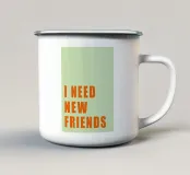 Il motivo artistico mostra la scritta umoristica "I need new friends" in arancione brillante su un delicato sfondo verde pastello. La tipografia chiara e il design minimalista conferiscono all'opera un aspetto moderno e ironico. Un pezzo elegante per chi ama l'umorismo e la tipografia contemporanea.