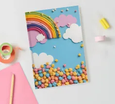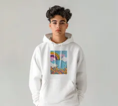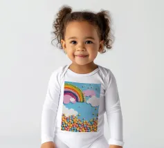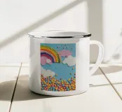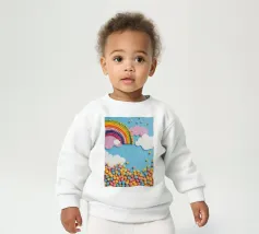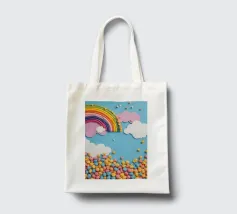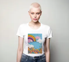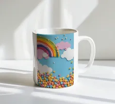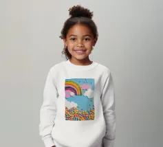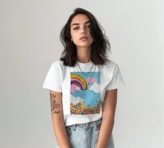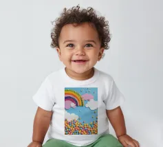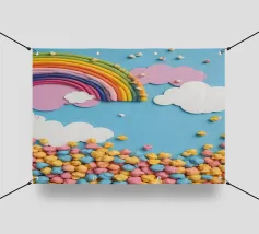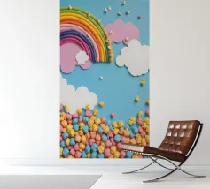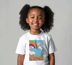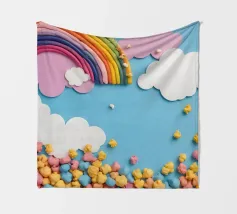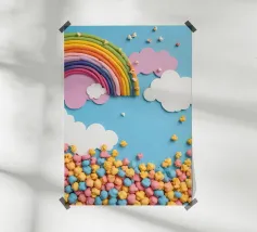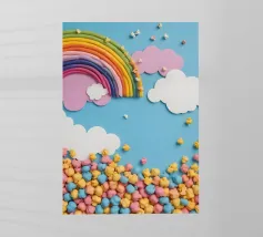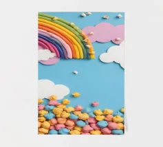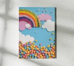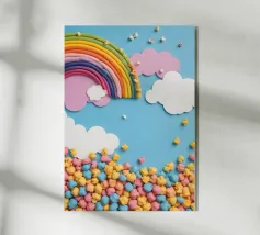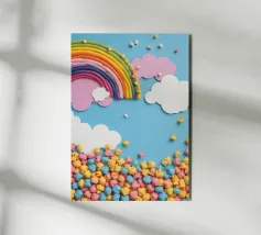 Luminoso, audace e irresistibilmente dolce: Candy Cloud Rainbow - Popcorn Paradise trasforma la gioia in arte. Questo disegno giocoso presenta un arcobaleno da sogno che scorre su nuvole color caramella, con pezzi di popcorn pastello che piovono felicità in basso.