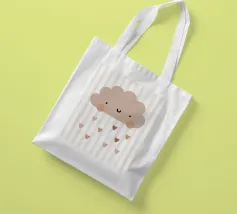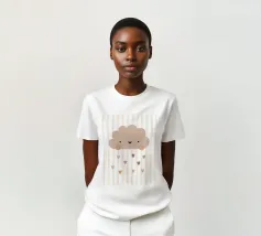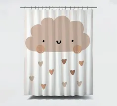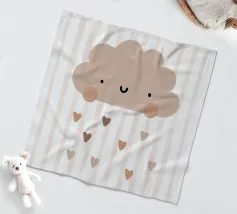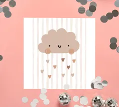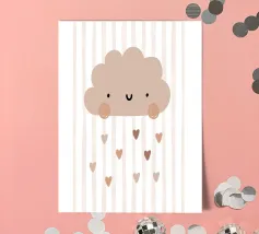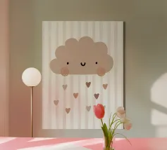Questa opera d'arte morbida e minimalista presenta una nuvola sorridente su cui piovono cuoricini. Arte carina, Decorazioni per bambini, Felicità