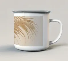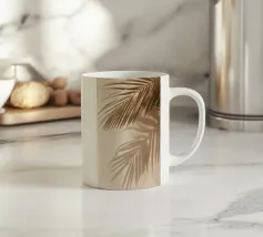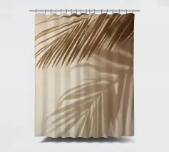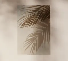 Un'opera d'arte sofisticata che presenta delicate ombre di foglie di palma su un caldo sfondo beige. Il sottile gioco di luci e texture crea un'estetica serena e moderna, perfetta per gli spazi contemporanei.