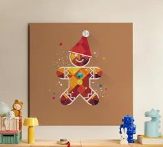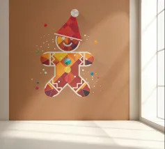 Allegro omino di pan di zenzero in stile geometrico, perfetto per il periodo natalizio. Un disegno vivace e festoso che diffonde gioia ed è adatto alle decorazioni natalizie.