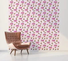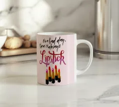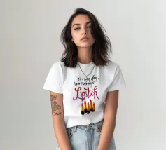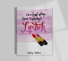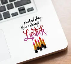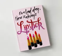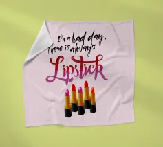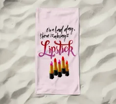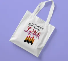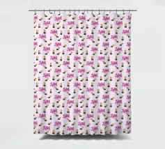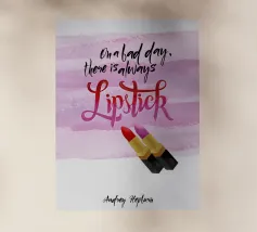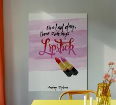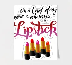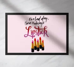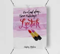 Affermazione divertente per donne e ragazze. Citazione di Audrey Hepburn: In una brutta giornata, almeno hai ancora il rossetto. Umoristica e ammiccante. La tenda da doccia e la carta da parati di questo motivo presentano un divertente disegno di rossetti e l'aggiunta scritta a mano: Lipstick Junkie.