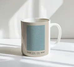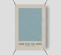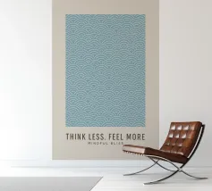 Questo poster raffigura il classico motivo giapponese Seigaiha, un'onda stilizzata che simboleggia calma, armonia e continuità. In un colore azzurro chiaro e abbinato alla citazione "Think Less. Feel More - Mindful Bliss", crea un'atmosfera di serenità ed equilibrio. Ideale per tutti gli ambienti che devono emanare chiarezza e leggerezza.