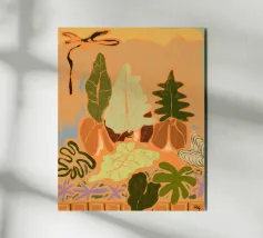 "Sway In The Breeze" - Una stampa d'arte tropicale serena e ispirata alla natura che celebra l'armonia, il movimento e la grazia femminile. Tre figure, parzialmente nascoste dietro un fogliame lussureggiante, evocano un senso di unità e tranquillità mentre ondeggiano nella dolce brezza. Con i suoi colori vivaci e lo stile bohémien moderno, questo pezzo porta un tocco rinfrescante di serenità tropicale in qualsiasi spazio. Perfetto per gli amanti dell'arredamento artistico e dell'arte murale colorata.