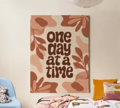 Un dolce promemoria per rallentare e prendere la vita un giorno alla volta. Questo disegno di ispirazione boho è caratterizzato da morbide tonalità pastello e forme astratte, che creano una presenza calmante e rassicurante. Perfetto per favorire la consapevolezza, la pazienza e il senso di equilibrio nel vostro spazio.
