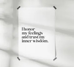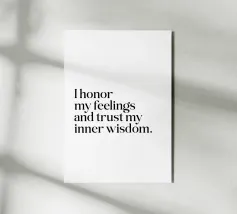 L'affermazione "onoro i miei sentimenti e mi fido della mia saggezza interiore" è un'affermazione di rispetto e fiducia in se stessi, che riconosce le emozioni e l'intuizione come un sistema di guida interna affidabile per affrontare le decisioni della vita. Significa un impegno a vivere in modo autentico e a fare scelte allineate con i propri valori fondamentali e con il proprio vero io.
