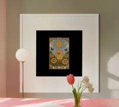 Un boggart giallo che tiene un dado in una mano e lancia due dadi nell'altra, intorno a lui è scritto un estratto della canzone del film Nightmare Before Christmas "Oh, il suono dei dadi che rotolano per me è musica nell'aria". Questo disegno rende omaggio all'iconico Oogie Boogie del film Nightmare Before Christmas. Regalate a chi ama questo film questa simpatica e spaventosa arte dell'Uomo Nero.