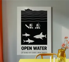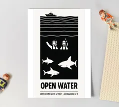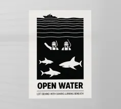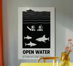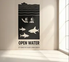 Stampa Open Water, Poster cinematografico alternativo, Arte murale minimalista, Bianco e nero, Stampe di alta qualità, Immersioni subacquee, Squali, Regalo per gli appassionati di cinema