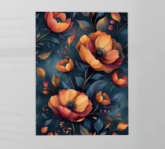 Quest'opera d'arte presenta una composizione floreale rigogliosa e vibrante, con una collezione di grandi papaveri aperti nei toni dell'arancione e del bordeaux. I fiori sono resi in uno stile realistico con un tocco pittorico che aggiunge profondità e consistenza alla composizione. Lo sfondo scuro crea un netto contrasto con le fioriture luminose, creando un senso di drammaticità ed eleganza. I piccoli dettagli, come le foglie intricate e i petali delicati, contribuiscono alla bellezza e alla complessità dell'opera. Quest'opera d'arte sarebbe un'aggiunta straordinaria a qualsiasi arredamento moderno o contemporaneo.