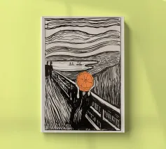 Sgranocchiate l'arancia. Una rivisitazione selvaggia e divertente di alcuni classici dell'arte, questo pezzo è il regalo perfetto per gli amanti dell'arte, per i surrealisti e per chiunque abbia bisogno di una buona dose di vitamina C! Vi piace questo disegno? Aggiungetelo al carrello e fate il check-out e vi arriverà subito? Volete salvarlo per dopo? Basta premere il pulsante preferito, quel simpatico pulsante a forma di cuore. Volete rimanere aggiornati sui nuovi/simili design del mio negozio? Andate su info artista e seguitemi per saperne di più!