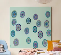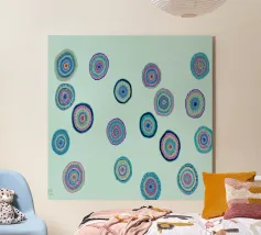 In questa stampa intitolata "Orbs Dance" l'artista Helen Joynson invita gli spettatori in un mondo ipnotico di bellezza astratta. Con la sua miscela unica di illustrazione e design grafico, Joynson crea una composizione vibrante e colorata che è sia visivamente impressionante che emotivamente evocativa. L'opera presenta un'esplosione di tonalità vivaci, come se i colori stessi fossero impegnati in una danza vivace. Su un sereno sfondo blu, le pennellate si animano di energia e movimento, formando intricati disegni che sembrano incresparsi sulla superficie. Le sfere sparse per tutta l'opera aggiungono un elemento di