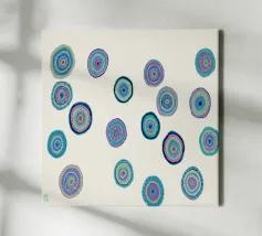 In questa stampa intitolata "Orbs Dance" l'artista Helen Joynson invita gli spettatori in un mondo ipnotico di bellezza astratta. Con la sua miscela unica di illustrazione e design grafico, Joynson crea una composizione vibrante e colorata che è sia visivamente impressionante che emotivamente evocativa. L'opera presenta un'esplosione di tinte vivaci, come se i colori stessi fossero impegnati in una danza vivace. Su un sereno sfondo color crema, le pennellate si animano di energia e movimento, formando intricati disegni che sembrano incresparsi sulla superficie.