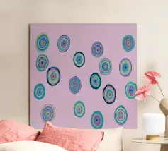 In questa stampa intitolata "Orbs Dance" l'artista Helen Joynson invita gli spettatori in un mondo ipnotico di bellezza astratta. Con la sua miscela unica di illustrazione e design grafico, Joynson crea una composizione vibrante e colorata che è sia visivamente impressionante che emotivamente evocativa. L'opera d'arte mostra un'esplosione di tinte vivaci, come se i colori stessi fossero impegnati in una danza vivace. Su un sereno sfondo rosa, le pennellate si animano di energia e movimento, formando intricati disegni che sembrano incresparsi sulla superficie.