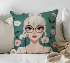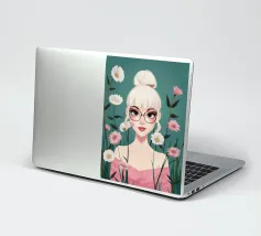 Quest'opera d'arte raffigura una persona con un abito a scacchi verde che tiene in mano un vaso di orchidee bianche. Lo sfondo marrone neutro sottolinea la semplicità e l'eleganza della scena.