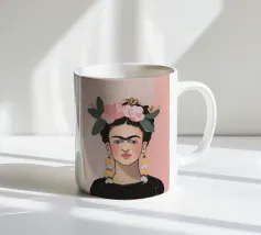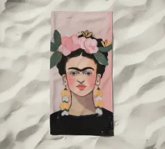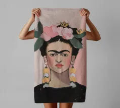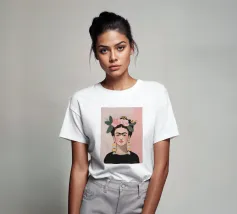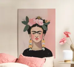 Questo affascinante ritratto di Frida Kahlo la ritrae con una colorata corona di fiori e orecchini floreali, in tenui colori pastello, e incarna la combinazione di arte messicana e femminismo.
