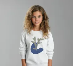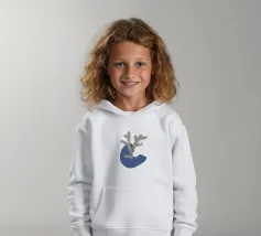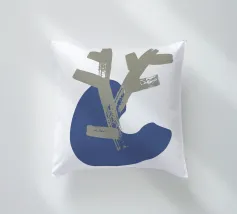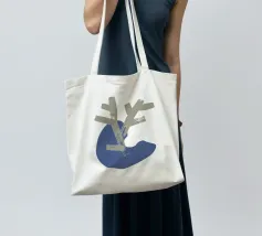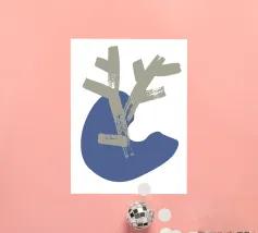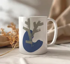 Un disegno minimalista presenta una forma astratta beige a forma di ramo sovrapposta a una forma organica blu. La composizione enfatizza la semplicità e il contrasto su uno sfondo bianco.