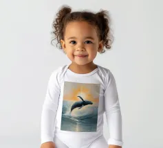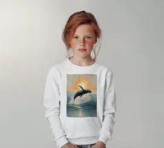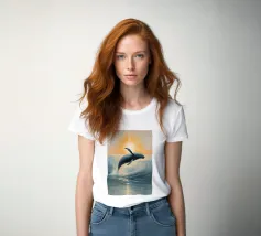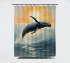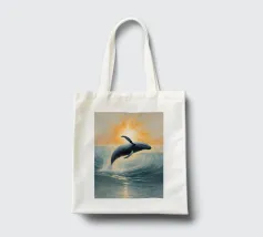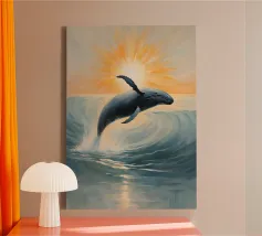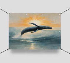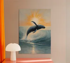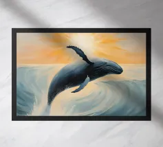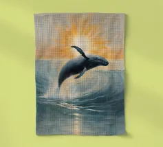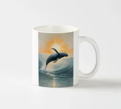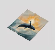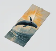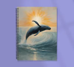 Questa opera d'arte mozzafiato cattura una maestosa balena che si infrange sulla superficie dell'oceano in un radioso tramonto dorato. Le onde scorrono con grazia, completando il movimento potente ma sereno della balena. La miscela di toni caldi e freddi crea un contrasto ipnotico, rendendo questo disegno perfetto per quaderni, abiti, asciugamani, tazze e altro ancora. Simbolo di libertà, forza e bellezza della natura, questo disegno conferisce un senso di tranquillità e meraviglia a qualsiasi prodotto.