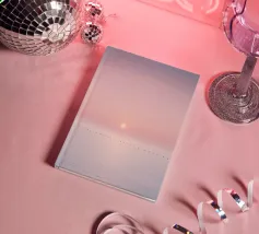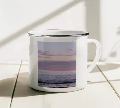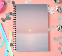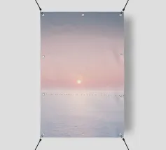Sperimentate la serena bellezza di una serata tranquilla con questa opera d'arte minimalista, che mostra un oceano tranquillo sotto un morbido tramonto rosa e viola, che si estende verso una linea d'orizzonte lontana e quasi invisibile. Perfetto per un'estetica moderna e rilassante.