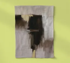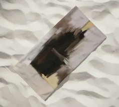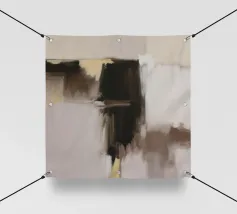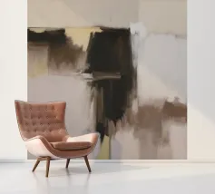 Un'opera d'arte astratta minimalista con ampie bande orizzontali di marroni terrosi, creme e toni profondi e tenui. La composizione evoca un senso di paesaggio tranquillo e di semplicità.