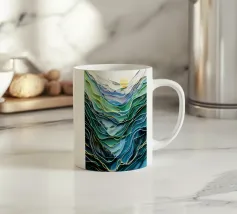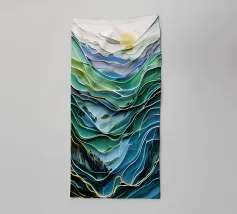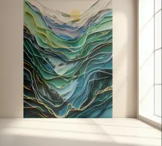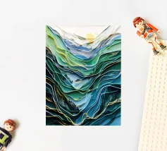Questa accattivante opera d'arte astratta utilizza carta stratificata e tinte vivaci per creare un paesaggio ipnotico. I dettagli intricati e i colori armoniosi evocano un senso di tranquillità e pace.