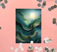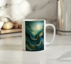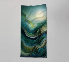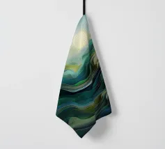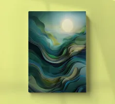Questo affascinante paesaggio astratto invita a immergersi nella sua serena bellezza. Gli intricati strati di tonalità verde, verde e oro creano un senso di profondità e movimento, mentre il sole nascente proietta una calda luce sulle colline ondulate. Questo pezzo è un'aggiunta perfetta a qualsiasi interno moderno, aggiungendo un tocco di tranquillità e raffinatezza.