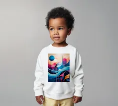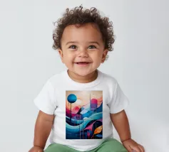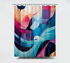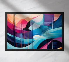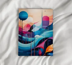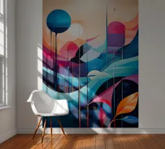 Questo vibrante paesaggio astratto invita lo spettatore in un mondo di colori vorticosi e forme organiche. Il gioco di linee decise e curve morbide crea una composizione dinamica ed energica.