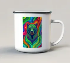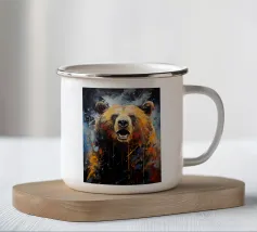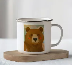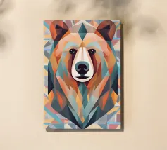 Questa accattivante opera d'arte reimmagina il nobile orso in uno stile astratto e geometrico. Con toni tenui di blu, arancione e pesca, il disegno combina elementi naturali con un'estetica moderna. Il volto dell'orso, sullo sfondo di alberi astratti e del cielo illuminato dalla luna, trasmette tranquillità e forza. L'uso accurato del colore e della forma conferisce a questo pezzo un'atmosfera contemporanea e rilassante, perfetta per chi ama la vita all'aria aperta o le rappresentazioni artistiche e uniche degli animali. Questo disegno è perfetto sia per i bambini che per gli adulti e può essere applicato su abiti, accessori o decorazioni per la casa.