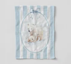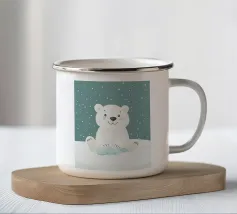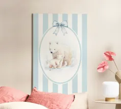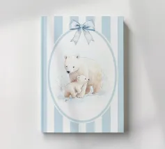 Una commovente illustrazione di un orso polare e del suo cucciolo in un ambiente innevato, che mostra la bellezza della fauna selvatica e dei legami familiari.