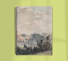 Paesaggio acquerellato in stile antico, scena di campagna acquerellata vintage