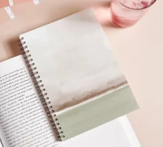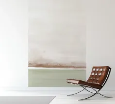 Paesaggio minimalista ad acquerello nei toni tenui del beige e del verde oliva.