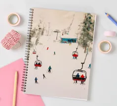 Un vivace motivo invernale: gli sciatori scivolano sulla pista mentre gli impianti di risalita rossi fluttuano nel paesaggio innevato. Con i suoi colori chiari e lo stile moderno, questo disegno porta il dinamismo sportivo e il fascino alpino in ogni casa. Perfetto per murales, tazze, cuscini o tessuti: un regalo ideale per gli appassionati di sci e gli amanti dell'inverno.