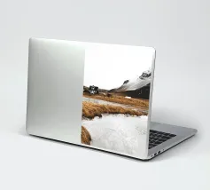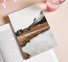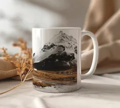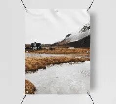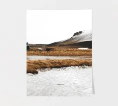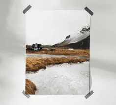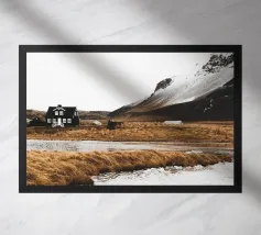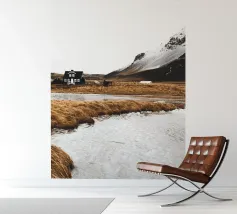Questo bellissimo motivo di un paesaggio scandinavo mostra una scena tranquilla con una casa tradizionale nera e una vetta innevata sullo sfondo. I toni caldi e terrosi dell'erba e la calma distesa d'acqua creano un'atmosfera armoniosa e invitante che cattura il fascino della natura nordica. Ideale per gli amanti dello stile scandinavo che apprezzano la naturalezza e la tranquillità.
