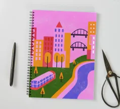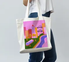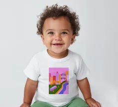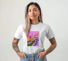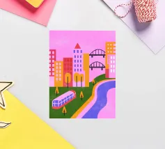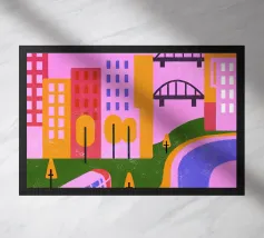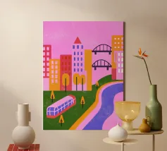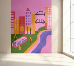 Aggiungete un tocco di moderna nostalgia al vostro spazio con la nostra stampa Retro Pop Cityscape! Questa immagine combina elementi iconici retro pop con un dinamico paesaggio urbano.