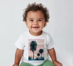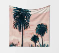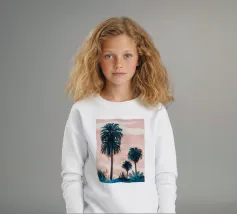 Tre eleganti palme che si stagliano con grazia contro un cielo luminoso, simbolo di bellezza tropicale.