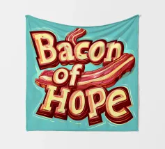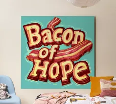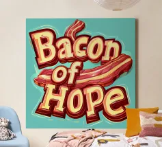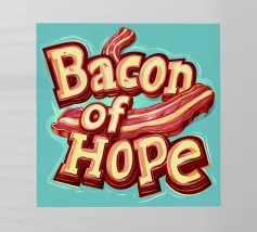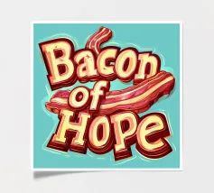 "Bacon of Hope" - uno slogan umoristico che celebra l'amore per il cibo delizioso. In lettere simili a quelle dei cartoni animati, questo slogan spiritoso risplende in blu e arancione e porta un sorriso sui volti degli amanti della colazione!