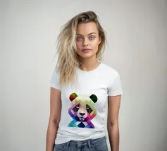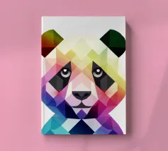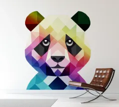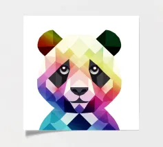 Questo panda dai vivaci colori dell'arcobaleno crea un'atmosfera allegra e stimolante. Le sfaccettature geometriche gli conferiscono un tocco moderno e lo rendono un richiamo visivo unico. Perfetto per gli amanti dell'arte colorata e dei motivi animali! Raffigurazione moderna e geometrica di un panda nei colori dell'arcobaleno