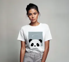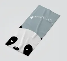 Questo affascinante motivo mostra un simpatico panda con una stella cadente che gli passa sopra la testa. Il design minimalista con forme chiare e colori tenui rende questa illustrazione un'opera d'arte espressiva ma sobria. Perfetto per gli amanti dei panda e dei disegni semplici.Motivo panda minimalista
