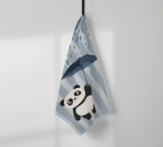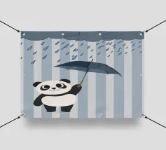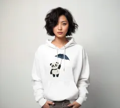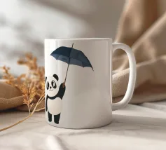 Panda, carino, ombrello, pioggia, giorno di pioggia, nuvole, animale, bianco e nero, cameretta, cameretta dei bambini, decorazione da parete, illustrazione, moderno, allegro, stravagante, grigio.