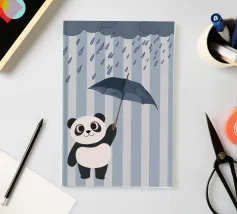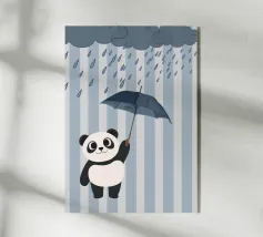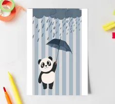 Poster Panda per la giornata di pioggia! Un allegro e simpatico panda è sotto la pioggia e tiene un ombrello blu sotto le nuvole scure. Questa illustrazione dolce e stravagante è perfetta per la cameretta dei bambini o per qualsiasi spazio che necessiti di un tocco di allegria. Il morbido sfondo grigio e le gocce di pioggia blu creano un'atmosfera calma ed elegante. Una splendida opera d'arte da parete per gli amanti dei panda, degli animali e delle giornate di pioggia!