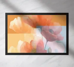 Delicata opera d'arte floreale con papaveri eterei, dove morbide trasparenze e tinte delicate creano una composizione sognante e piena di luce. Una celebrazione della grazia della natura, questo pezzo evoca serenità grazie alla sua tavolozza ariosa e alle texture fluide e luminose.