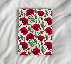 Modello vettoriale disegnato a mano con fiori di papavero e coccinelle
