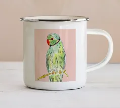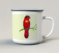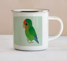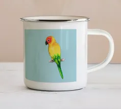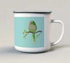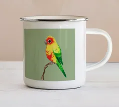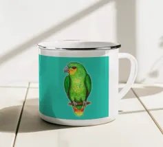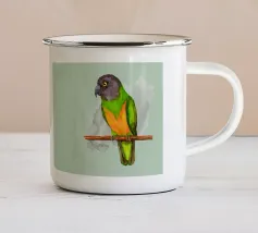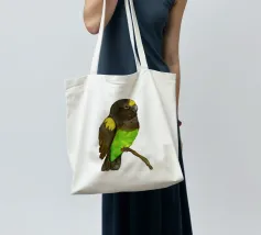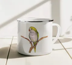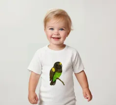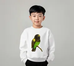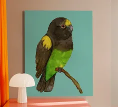Disegno ad acquerello di un pappagallo di Meyer. Questo uccello marrone-verde con macchie gialle è seduto su un ramo.
