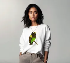 L'uccello siede tranquillamente su una zampa e vi guarda dolcemente con un occhio.