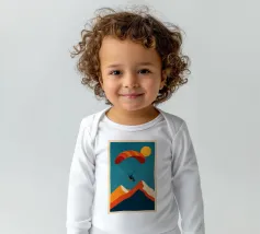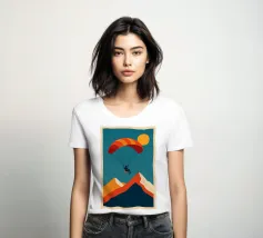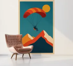 Un volo sospeso sopra le montagne, tra cielo e sole. Questo poster cattura il momento magico in cui ci si lascia alle spalle la terra e si abbraccia l'alto. Perfetto per i sognatori e gli amanti del brivido.