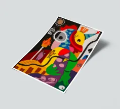 Una sfilata di creature surreali che si muovono in un paesaggio onirico. I dettagli esagerati e i tratti vibranti aggiungono energia alla scena fantastica.