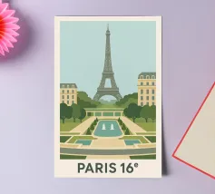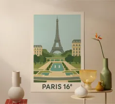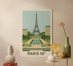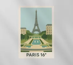 Un omaggio alla geometria rilassante e maestosa del 16ᵉ arrondissement, con viste centrali sulla Torre Eiffel e sui giardini classici. Questo poster è perfetto per un arredamento raffinato, tra natura scolpita ed elegante urbanesimo.