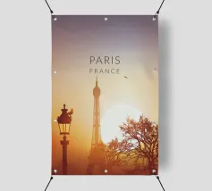Questo disegno mostra un'illustrazione stilizzata dell'iconica Torre Eiffel, raffigurata nel caldo bagliore del sole al tramonto. Questo design suggestivo cattura l'essenza di Parigi come città di luce, amore ed eleganza.